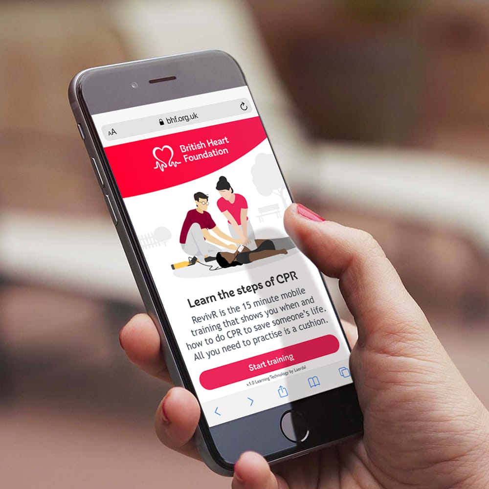 Every year there are more than 40,000 out-of-hospital cardiac arrests in the UK. It’s an emergency with a survival rate of less than 1 in 10, but early CPR and defibrillation can more than double these chances. We’re working hard to improve access to CPR training and defibrillators. RevivR, our free, online CPR training programme is a groundbreaking tool that, in just fifteen minutes, teaches people how to save a life by performing CPR and using a defibrillator. More than 311,000 people have now completed RevivR, and thanks to our Community Defibrillator Programme we’re making more defibrillators available and accessible in places they are needed most.